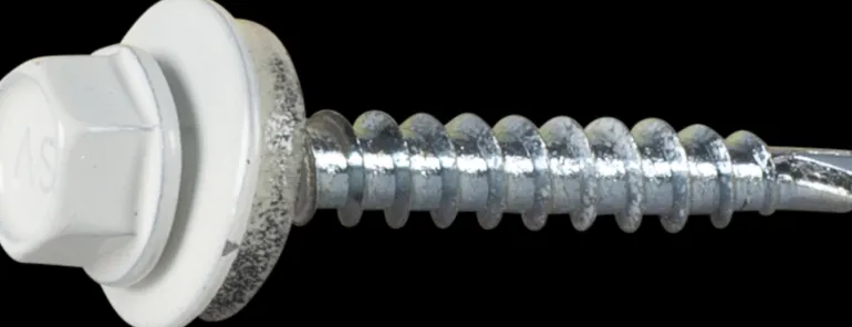 ESSVE-kateruuvi 4,8 x 35 mm porakärjellä, galvanoitu teräsaluslaatta ja EPDM-tiiviste. Tarkoitettu profiloidun pellin asennukseen puualustaan sekä pellin asennukseen peltiin (limitys).