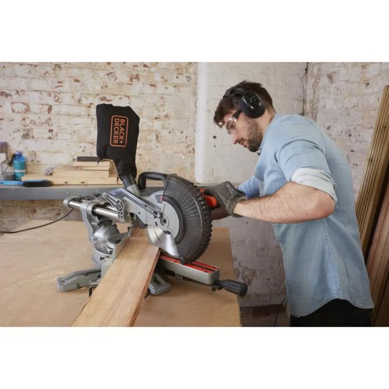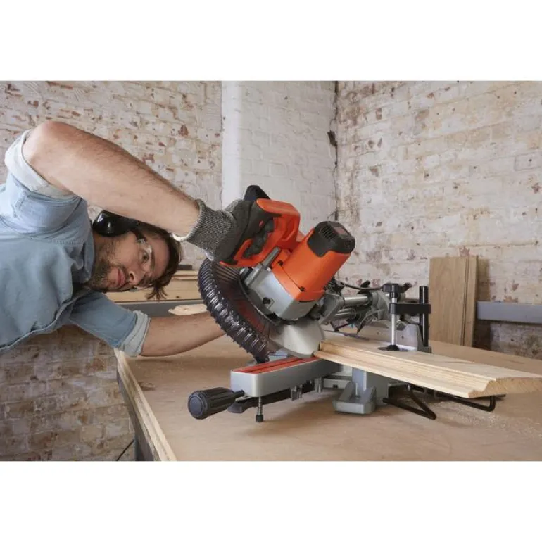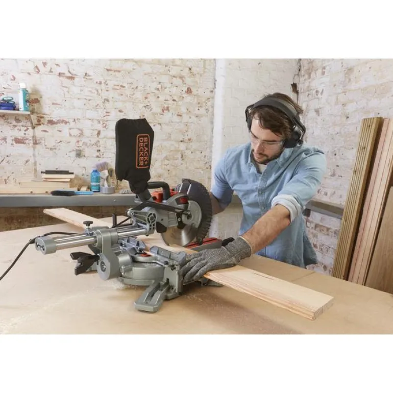 Black & Decker BES700-QS on 1600W:n katkaisu- ja jiirisaha, jonka leikkuukapasiteetti on 45° ja jiirauskapasiteetti 48°. Ihanteellinen tarkkoihin, suoriin ja siisteihin leikkauksiin jopa 305 mm paksuudella. 100 % tarkkuus käyttämällä innovatiivista varjolinjajärjestelmää. Mukana tulee integroitu pölynkeräyspussi pitämään työtilaa puhtaana. Laikan halkaisija on 216 mm, joten leikkauskapasiteetti on enintään 55 mm x 305 mm. Asennusta ei tarvita, vaan saha on valmis käytettäväksi heti, kun se puretaan pakkauksesta. Saha soveltuu puisten runkojen, palkkien, lattialautojen, vuorausten ja listojen leikkaamiseen ja se soveltuu käytettäväksi kodin korjauksissa.