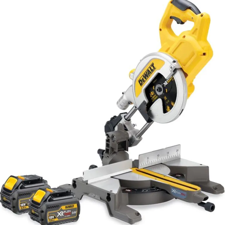 DEWALT DCS777 on 54 V:n akkukäyttöinen katkaisu- ja jiirisaha, jossa on kallistussäädöt 50° molempiin suuntiin. Varustettu 216mm:n terällä 80mm:n sahaussyvyyteen asti. Nopeus 6300 kierr./min. XPS-sahauslinjajärjestelmä valaisee työkappaleen kunnolla.