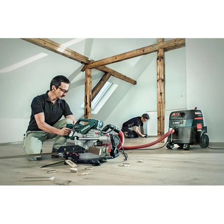 Metabo KGSV 72 XACT SYM on 1800 W:n katkaisu- ja jiirisaha, terä 216 mm. Leikkuuleveys on 305 mm. Laserlinja valaisee työkappaleen kunnolla.