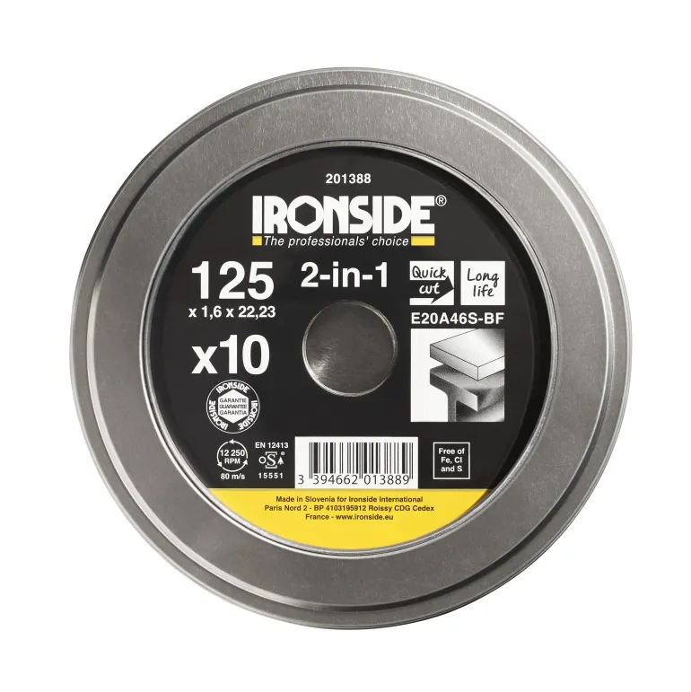 Uusi ja paranneltu Ironside-katkaisulaikkojen tuotevalikoima. Uudet hiomajyvät sekä niiden sitoutuminen toisiinsa takaavat entistä paremmat katkaisuominaisuudet. Laikat kestävät pidempään, ne ovat helpompia käyttää ja leikkaavat paremmin jopa pienemällä painolla.