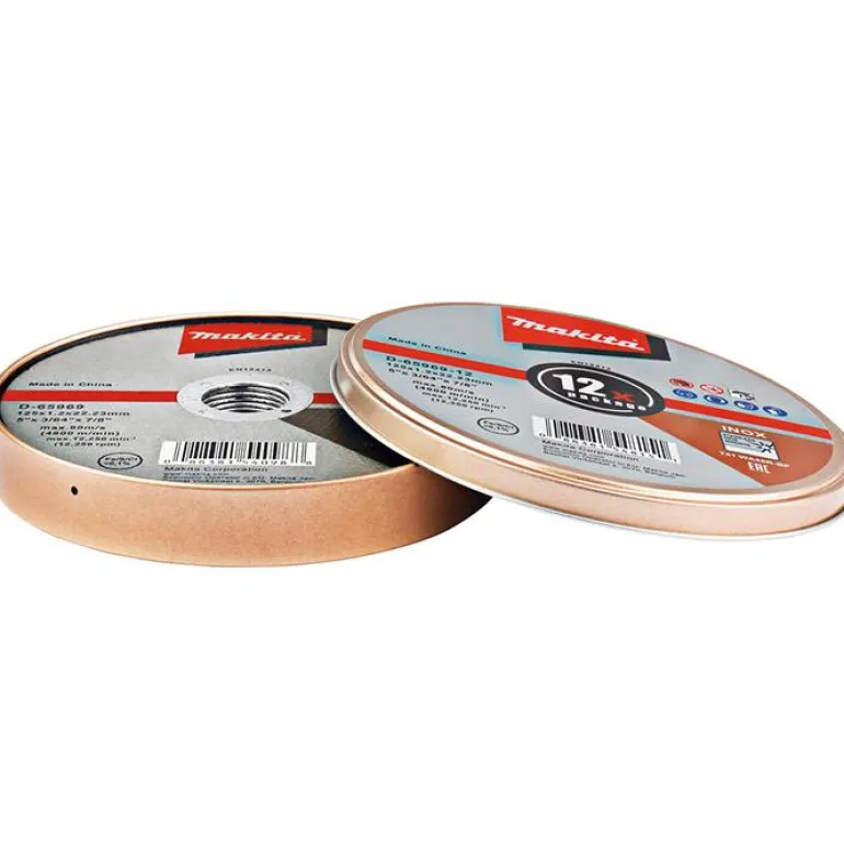 Makita D-65969-12 on katkaisulaikka, jonka halkaisija on 125 mm ja reiän halkaisija 22,23 mm. Leikkauskiekon paksuus on 1,2 mm, ja se toimitetaan 12 pakkauksena.