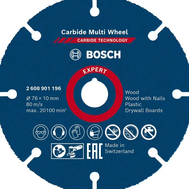 Katkaisulaikka pienille kulmahiomakoneille, joka soveltuu lukuisien pehmeämpien materiaalien leikkaamiseen. Se leikkaa puuta, muovia ja moderneja komposiittimateriaaleja. EXPERT Carbide Multi Wheel-katkaisulaikka tekee kulmahiomakoneestasi entistä monikäyttöisemmän.