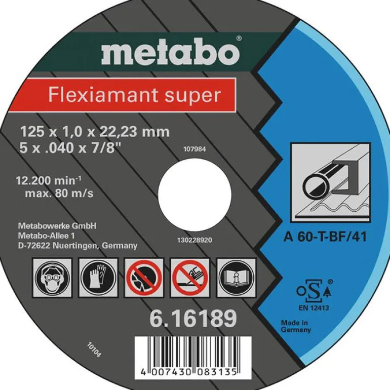 Ohut, erittäin tehokas katkaisulaikka ohuen materiaalin, esim. pellin, putkien, profiilien ja teräslangan, sahaamiseen. Mitat: 115×22,23mm. Paksuus 1mm.