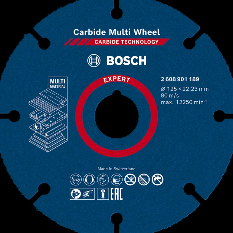 Katkaisulaikka, joka soveltuu lukuisien pehmeämpien materiaalien leikkaamiseen. Se leikkaa puuta, muovia ja moderneja komposiittimateriaaleja. EXPERT Carbide Multi Wheel-katkaisulaikka tekee kulmahiomakoneestasi entistä monikäyttöisemmän.