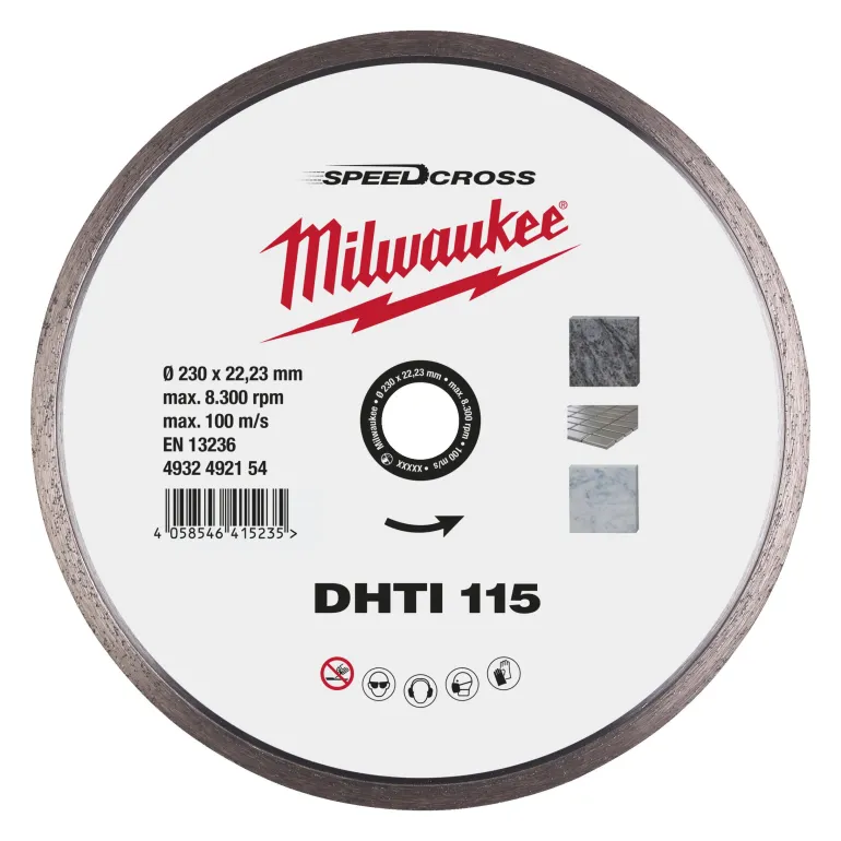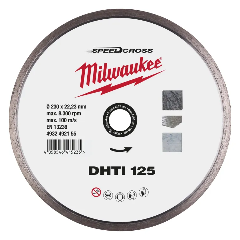 Milwaukee 4932492155 SPEEDCROSS DHTI 125 mm -turboreunainen katkaisulaikka mahdollistaa todella puhtaat ja tarkat katkaisut. Tuottaa erittäin puhtaat katkaisut graniitille, tekokivelle ja koville (gres/posliini) laatoille, joiden paksuus on enintään 20 mm.