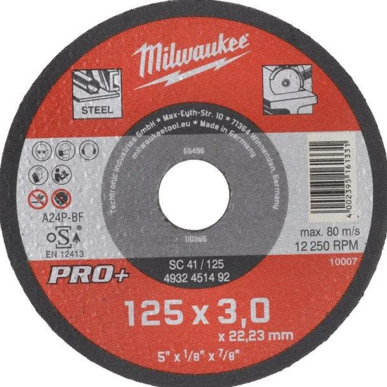 SCS 41 PRO+ -sarjan katkaisulaikka, halkaisija 125 mm, reiän koko 22,2 mm, paksuus 3 mm. Ruostumattomalle ja haponkestävälle teräkselle, karkaistulle valuraudalle ja työkaluteräkselle.