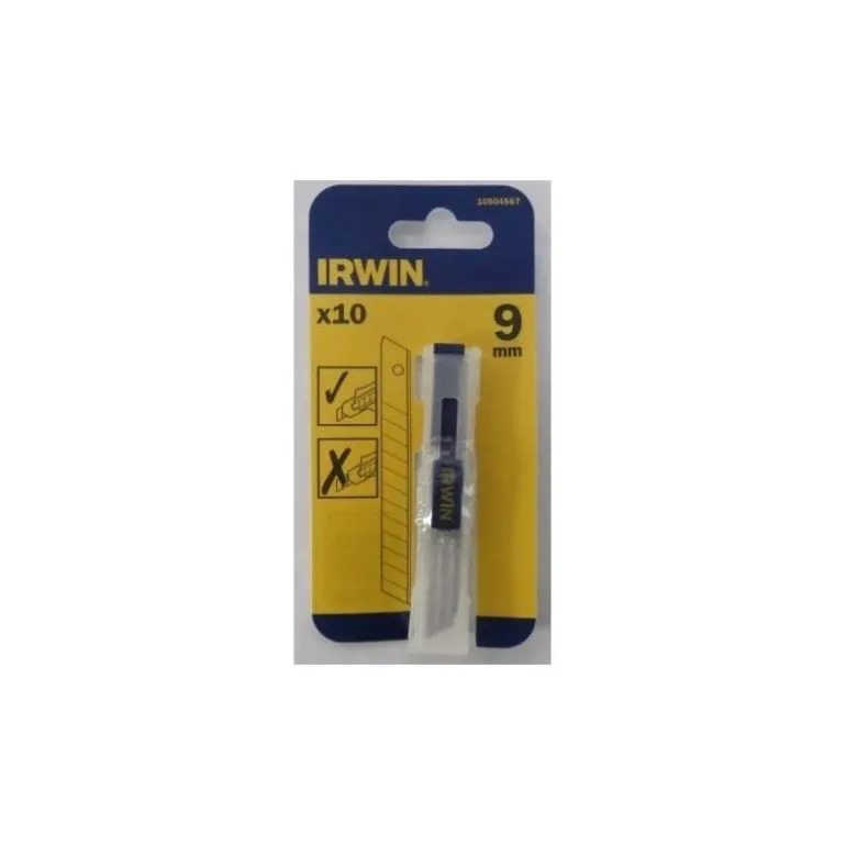 Irwin-katkoterä, jonka leveys on 9 mm ja joka on valmistettu hiiliteräksestä. Terä katkeaa tasaisesti halutusta kohdasta ja käyttäjä saa uuden ja terävän leikkuukärjen. Toimitetaan 10 kpl:n pakkauksessa.