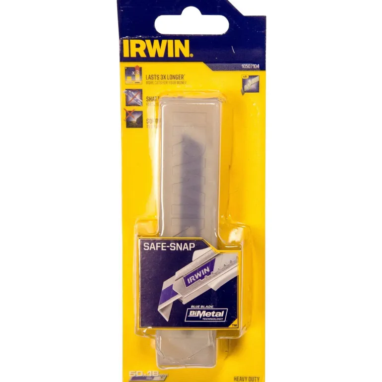 Bimetalliset katkaisuterät, jotka on valmistettu hitsaamalla pikateräs- ja jousiteräsleikkuureunat yhteen, tarjoavat kummankin tyypin edut: turvallisuuden ja pidemmän käyttöiän. Irwin-katkoterien leveys on 18 mm, ja ne ovat turvallisempia, koska ne eivät katkea normaalissa työskentelyssä, mikä pienentää rikkoutuneiden terien aiheuttamaa loukkaantumisriskiä. Koska terät kestävät pidempään kuin perinteiset hiiliterät, niitä ei tarvitse vaihtaa yhtä usein – harvemmat teränvaihdot vähentävät viiltohaavaonnettomuuksia. Toimitetaan 50 kpl:n pakkauksessa.