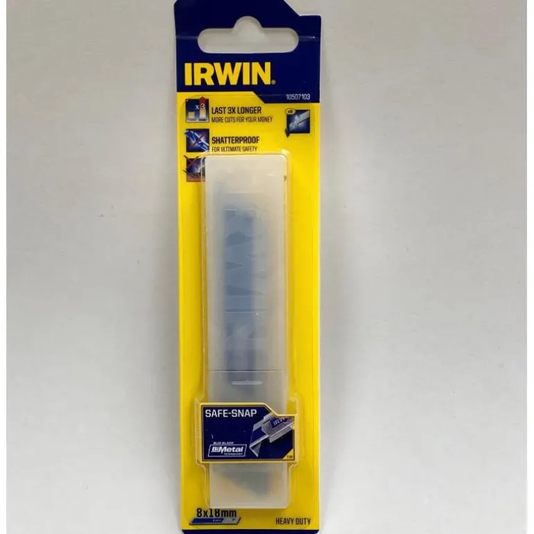 Bimetalliset katkaisuterät, jotka on valmistettu hitsaamalla pikateräs- ja jousiteräsleikkuureunat yhteen, tarjoavat kummankin tyypin edut: turvallisuuden ja pidemmän käyttöiän. Irwin-katkoterien leveys on 18 mm, ja ne ovat turvallisempia, koska ne eivät katkea normaalissa työskentelyssä, mikä pienentää rikkoutuneiden terien aiheuttamaa loukkaantumisriskiä. Koska terät kestävät pidempään kuin perinteiset hiiliterät, niitä ei tarvitse vaihtaa yhtä usein – harvemmat teränvaihdot vähentävät viiltohaavaonnettomuuksia. Toimitetaan 8 kpl:n pakkauksessa.