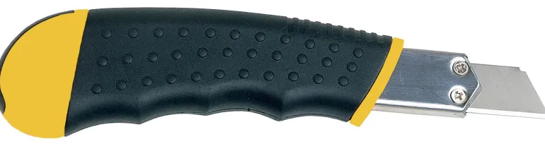 Metallia ja mukavaotteista kaksikomponenttimateriaalia, teräskisko. Terän leveys 18mm. Terämakasiinissa 6 katkoterää.