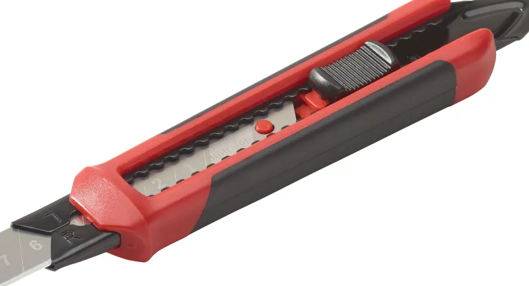 SFRP 18A on ergonominen katkoteräveitsi, jossa on evä. Veitsellä on monipuoliset käyttötarkoitukset ja se soveltuu hyvin kipsin, eristeiden, märkätilalevyjen ja puun leikkaamiseen.