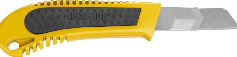 Metallirunko, jossa kumitettu otepinta Terän leveys: 18 mm. Veitsen pituus: 155 mm. Mukana yksi terä.