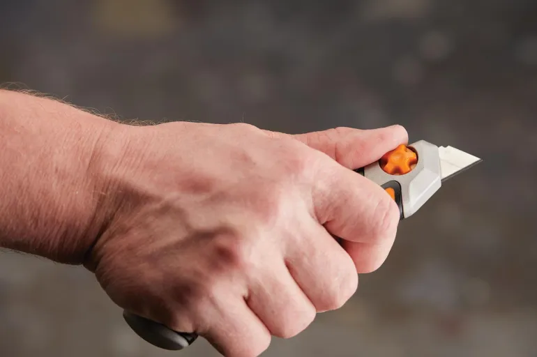 Fiskars CarbonMax katkoteräveitsi mukavalla terän vaihdolla edestä käsin ilman irrallisia osia helpottaa ja nopeuttaa terän vaihtoa. Sisäänrakennettu mekanismi helpottaa käytettyjen terien katkaisemista ja keräämistä, joten irtonaiset ja käytetyt terät eivät aiheuta huolta.