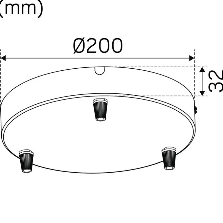 Valkoinen kattokuppi asennettavaksi sisäkattoon tai kattorasian päälle. Kolmen vaihtovalaisimen lisävaruste. Ø200 mm, korkeus 32 mm.