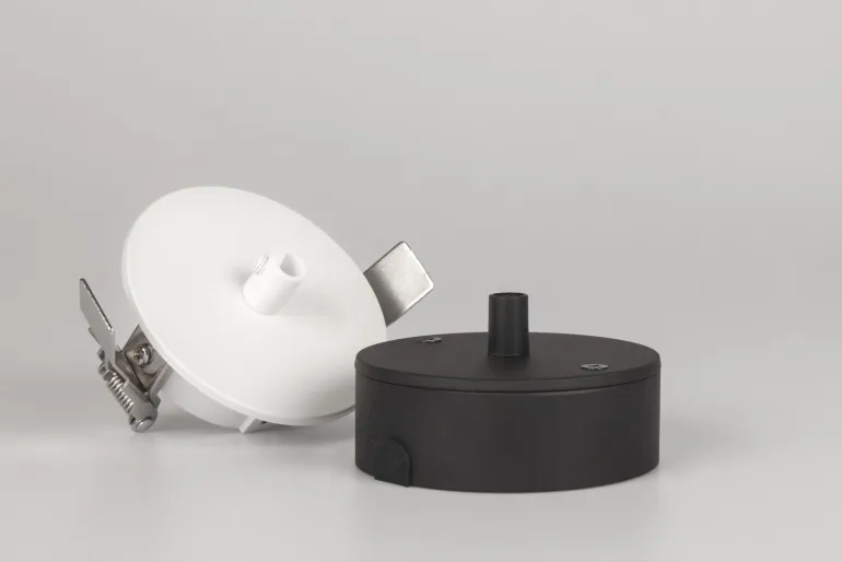 Musta kattokuppi asennettavaksi sisäkattoon tai kattorasian päälle ruuveilla. Riippuvalaisimien lisävaruste.