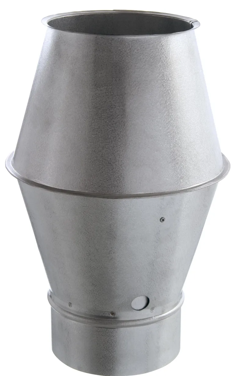 Pyöreä poistoputki ABC-JET teollisuuteen, poistoilma-aukko ylöspäin. Sopii jatkuvaan käyttöön.