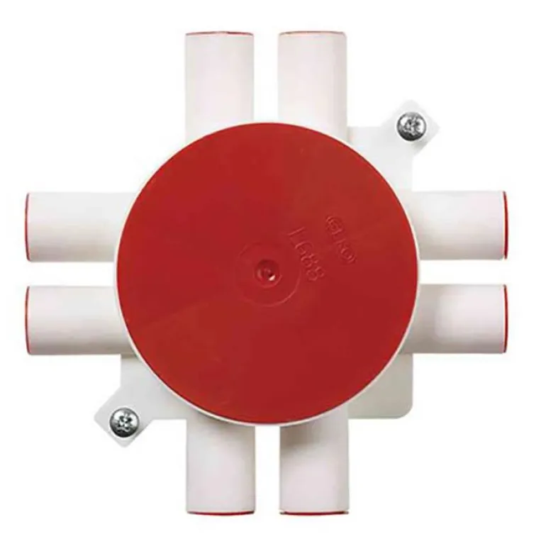 Tyypin 40/8 kattorasia uppoasennukseen, mukana kiinnitysruuvit. Putkinysien halkaisija on 16 mm, mutta sopivat myös 20 mm:n putkille putkimuhvin kanssa. Putken lukitus ja sisääntulo takaa, naulausmahdollisuus. Halogeenitonta muovia, halkaisija 82 mm.