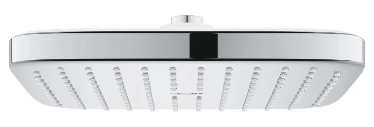 Tämä suuri, neliönmuotoinen GROHE Vitalio Comfort 250 -sadesuihkupää tuo kylpyhuoneeseesi modernin ilmeen ja käytännöllisyyttä. Sen 250 mm leveä suihkupää tarjoaa pehmeän mutta tasaisen Rain-suihkun, joka ympäröi sinut miellyttävästi. GROHE DreamSpray -teknologia takaa tasaisen veden jakautumisen kaikista suuttimista.