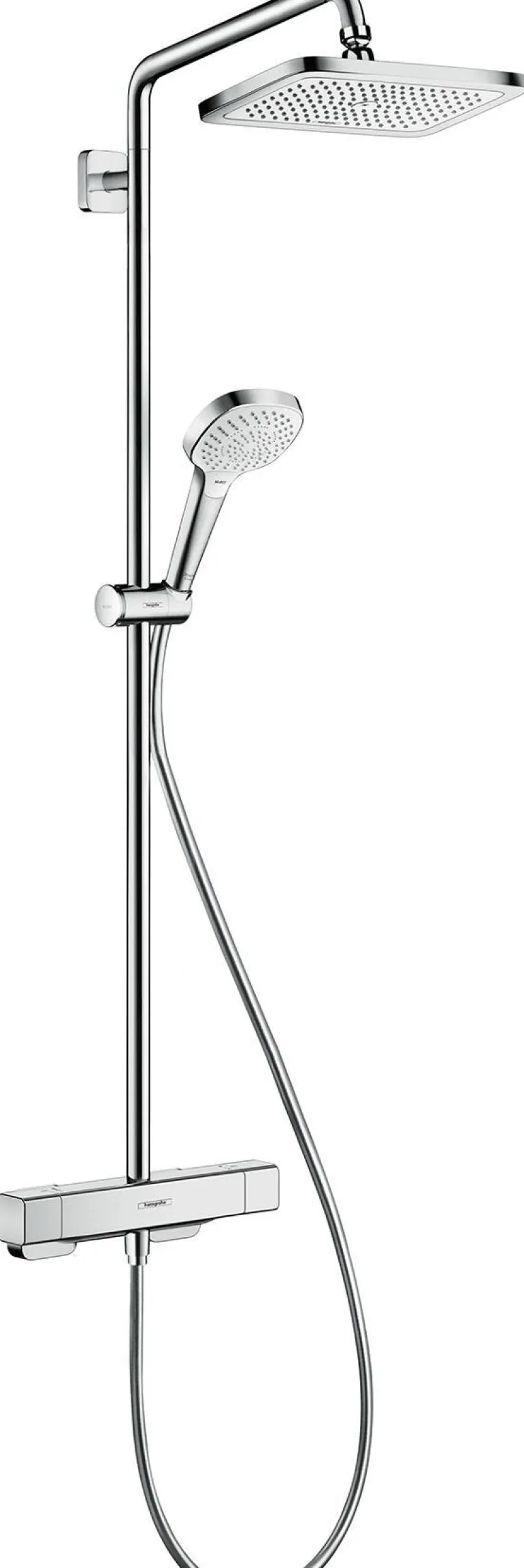 Hansgrohe Croma E280 on kromattu kattosuihkusarja, joka koostuu ylääsuihkusta, käsisuihkusta, suihkutermostaatista ja suihkuletkusta. Suurin virtausnopeus 3 baarin paineessa on 8,5 l/min ja siinä on lämpötilan säädin turvalukituksella 40 asteessa.