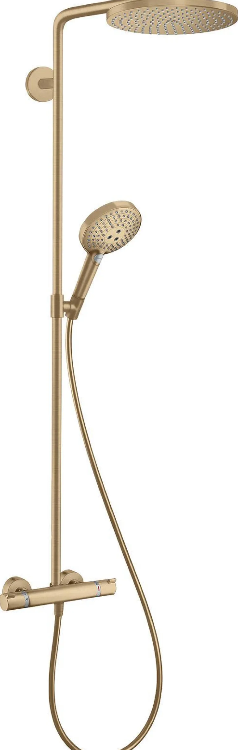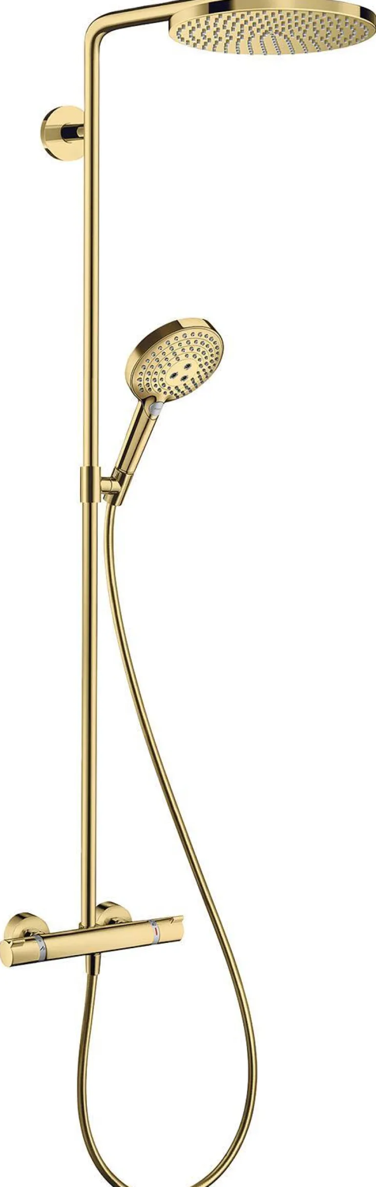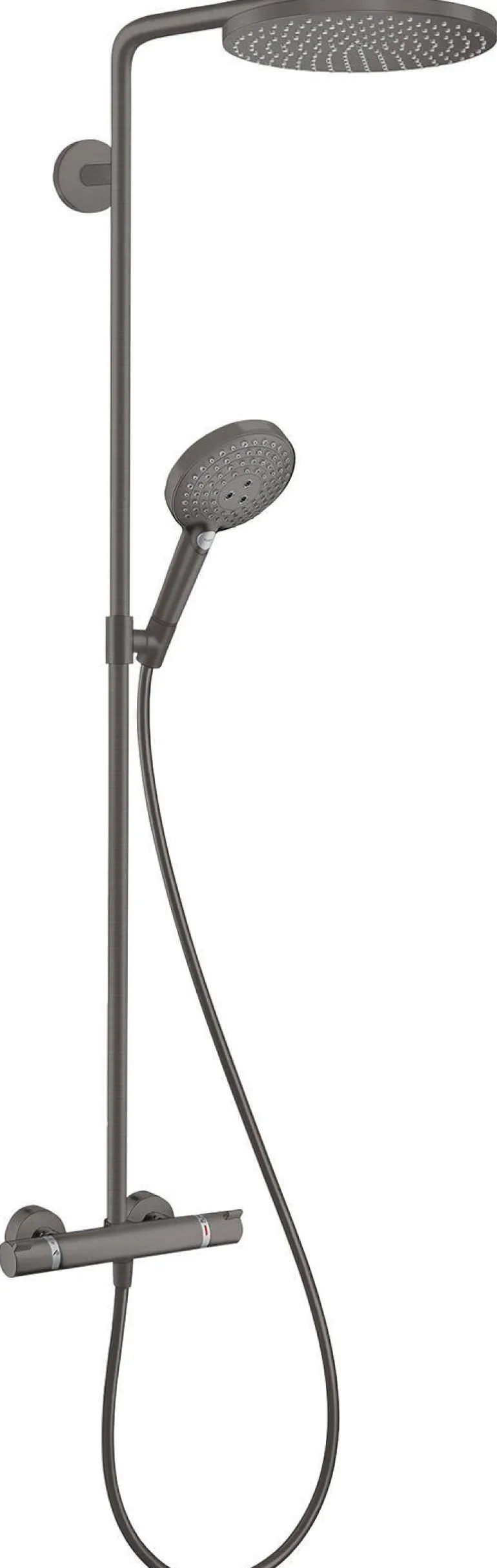 Hansgrohe Raindance Select S Showerpipe 240 1-Jet PowderRain termostaatilla on kattosuihkusarja, joka koostuu yläsuihkusta, käsisuihkusta, suihkutermostaatista, suihkuletkusta ja liukukiinnikkeestä. Suurin virtausnopeus 3 baarin paineessa on 16 l/min ja siinä on liitäntäkierre G ½.