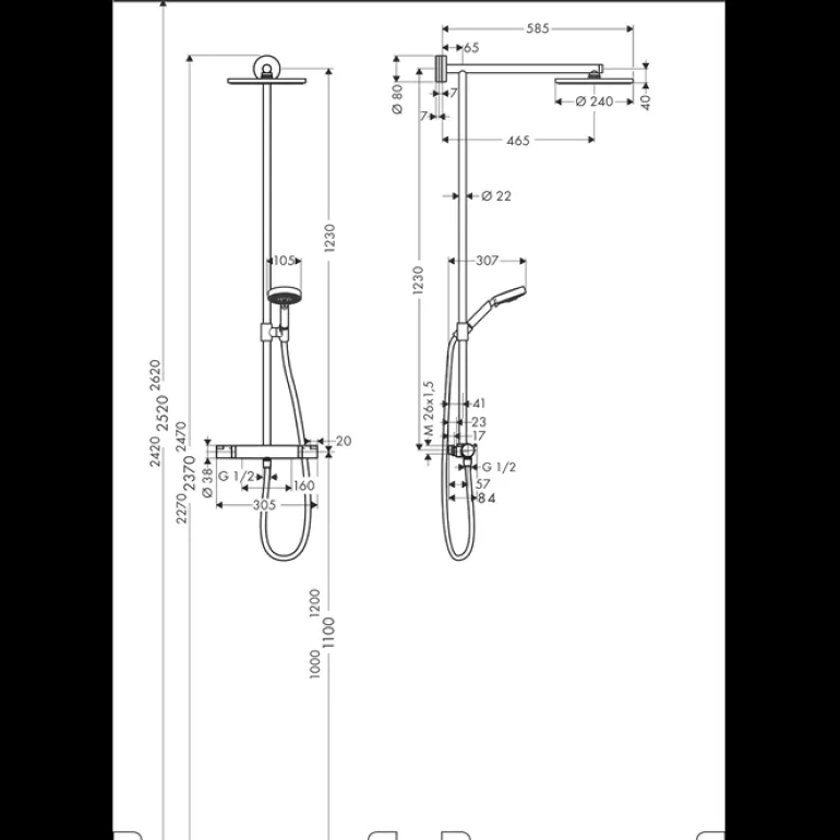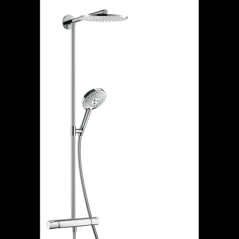 Hansgrohe Raindance S on täydellinen, kromattu kattosuihkusetti hanalla, kattosuihkulla, käsisuihkulla, letkulla ja liukukiinnikkeellä. Kattosuihkun halkaisija on 240 mm ja käsisuihkun halkaisija 105 mm. Suihkun virtausnopeus on 19 l/min ja RainAir-suihkutyyppi antaa pehmeän suihkusateen ilmatäytteisillä pisaroilla. Varustettu nopealla kalkinestotoiminnolla.