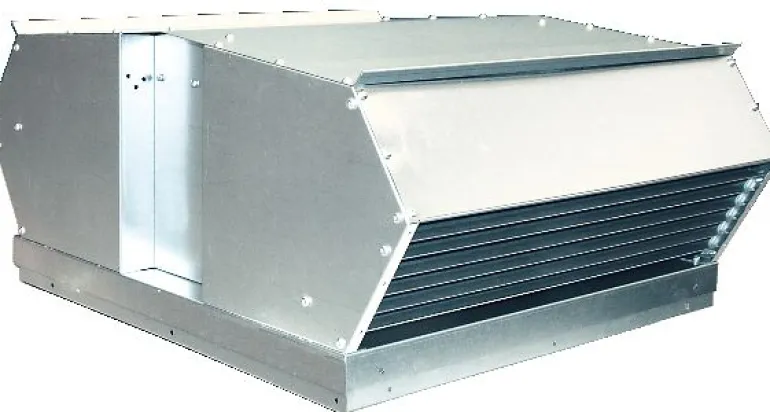 TKV EC on kattotuuletin, jossa on nelikulmainen liitäntä, pystysuora puhallus ja taaksepäin kaarevat lavat. Tuuletin on luotettava ja tehokas.