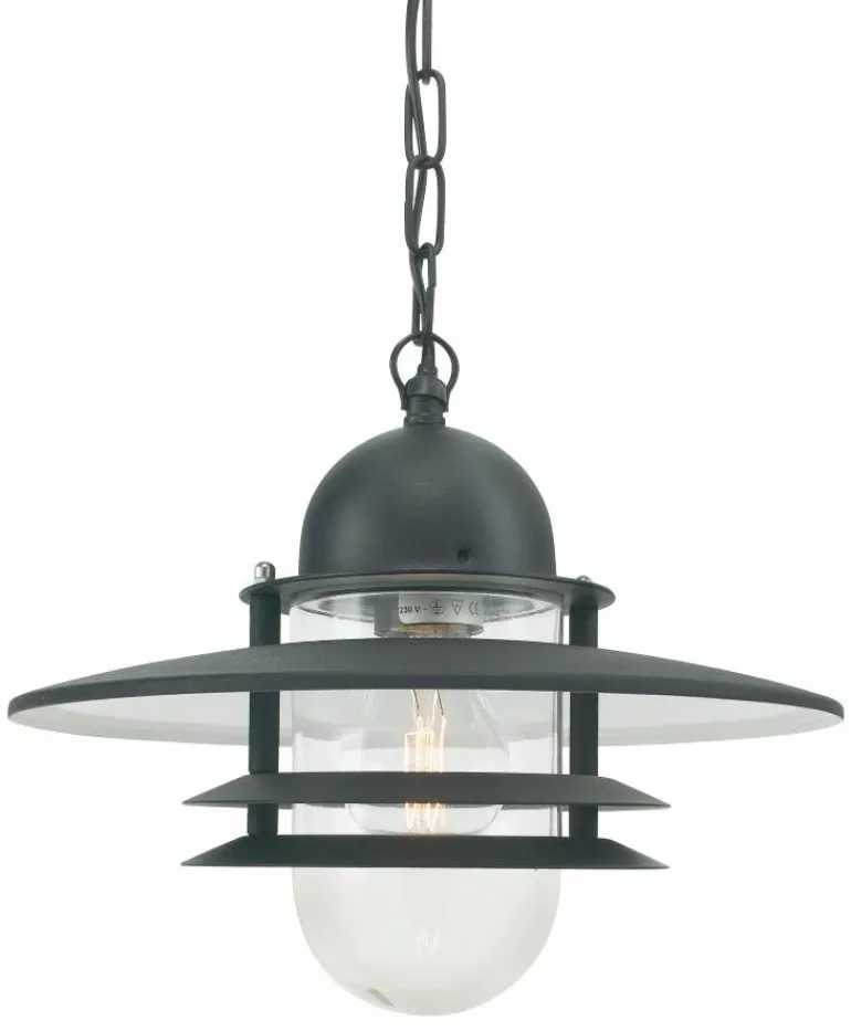 Kattovalaisin, sinkitty tai jauhemaalilla mustaksi maalattu. Valaisimessa on kirkas lasi ja E27-kanta. Ripustetaan ketjulla.