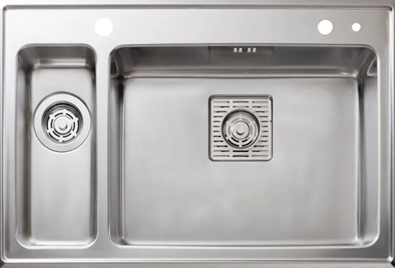 Keittiöallas alta- ja huullosasennukseen suurella ja pienellä altaalla. Suuri allas oikealla. Sisältää vaijeripohjaventtiilit, pesuaine-annostelijan, huuhtelukorin sekä vesilukon. Moderni ja harmoninen yleisilme selkeiden linjojen ja pyöristettyjen kulmien ansiosta.