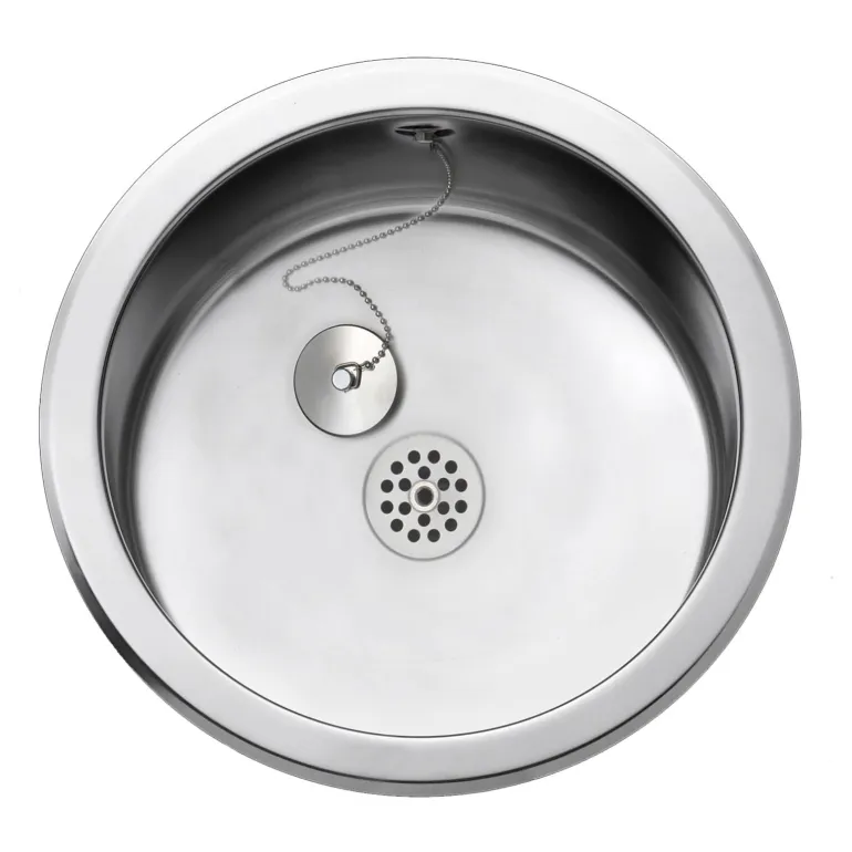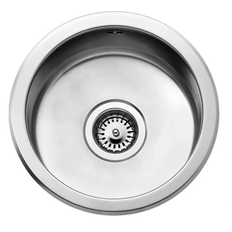 Pyöreä keittiöallas uppoasennettava. Sisältää koripohjaventtiilin, ylivuodon ja vesilukon. Ulkomitat: Ø380×150 mm. Altaan mitat: Ø313X150 mm. Aukotus: Ø343 mm.