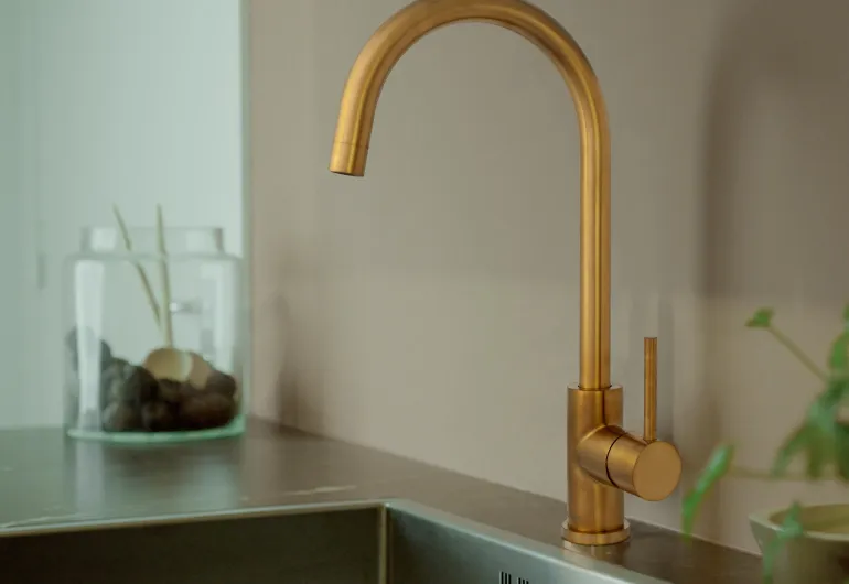 Keittiöhana, jossa on U-juoksuputki ja 35 mm:n keraaminen sisäosa. Näyttävä ja tyylikäs malli, väri harjattu kulta. Korkea U-juoksuputki tekee kattiloiden ja muiden astioiden pesemisestä helppoa. GDV-hyväksytty juomavedelle.