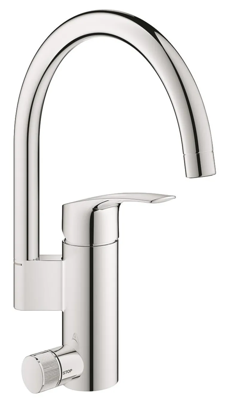 Grohe Eurosmart on kromattu yksivipuinen keittiöhana korkealla juoksuputkella. Kiiltävä Grohe Long-Life Shine -kromipinnoite helpottaa puhdistamista. GROHE SilkMove Energy Saving 35 mm:n keraaminen kasetti energiansäästötoiminnolla kylmäkäynnistyksen avulla. Kääntyvä juoksuputki, jonka kääntöalue on 0° / 90° / 360°. Astianpesukoneen sulkuventtiilillä.