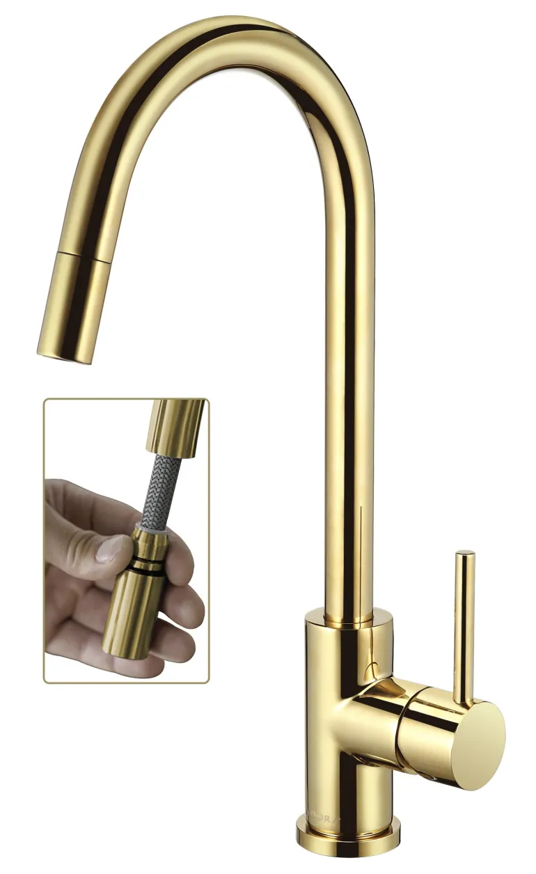Keittiöhanassa on korkea U-putki ja joustava ulosvetotoiminto, joka tekee patojen ja muiden astioiden pesemisestä helppoa. Putkea voidaan vetää ulos enintään 70 cm.