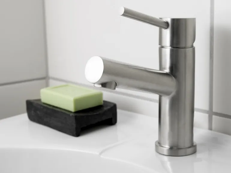 Tiskialtaan hana 35 mm:n keraamisella säätöosalla Pop up -allasventtiili ja liitäntäletku (500 mm) pehmeää metallikäärittyä PEX-materiaalia, 3/8″/G10 mm:n mutteri tavalliseen kupariputkiliitäntään. Ruostumattomasta teräksestä valmistettuja tuotteita on huollettava teräksenhoitoaineilla.