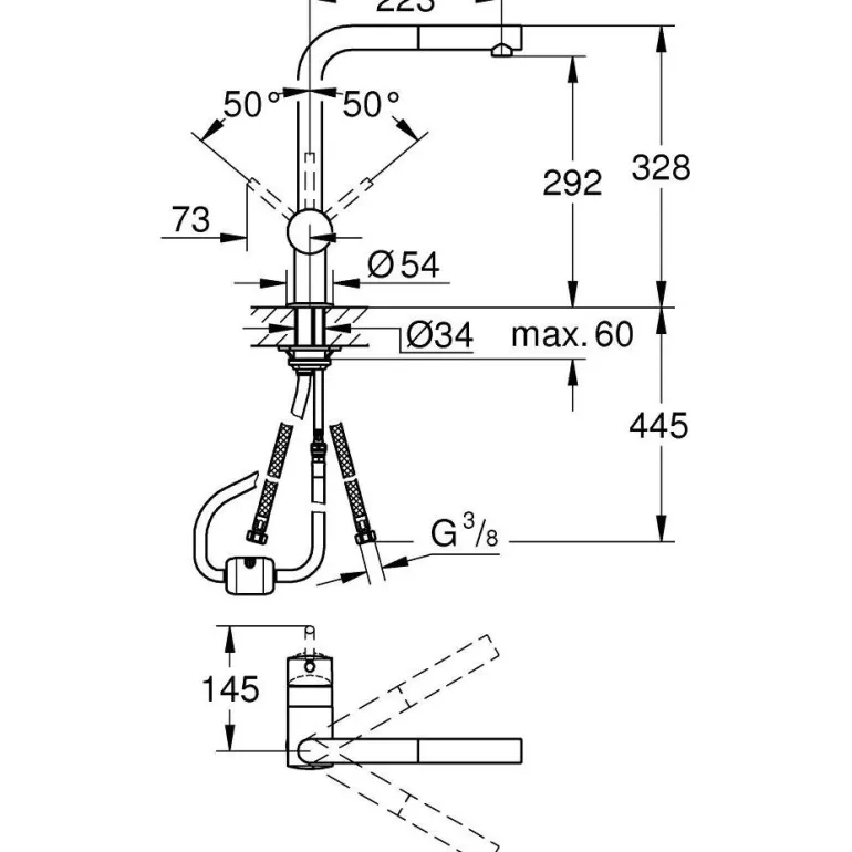 Grohe Minta on yksikahvainen keittiöhana, DN 15. Keittiöhanassa on korkea L-putki, joka kääntyy 360 astetta ja on ulosvedettävissä. GROHE SilkMove -säätöosa takaa tasaisen käytön koko käyttöiän ajan ja mahdollistaa veden ja lämpötilan tarkan hallinnan. GROHE StarLight -kromipinnoite yksinkertaistaa puhdistusta ja pitää keittiöhanan sekoittimen kiiltävänä pitkään. Joustavien liitäntäletkujen ansiosta asennus on nopeaa ja helppoa.