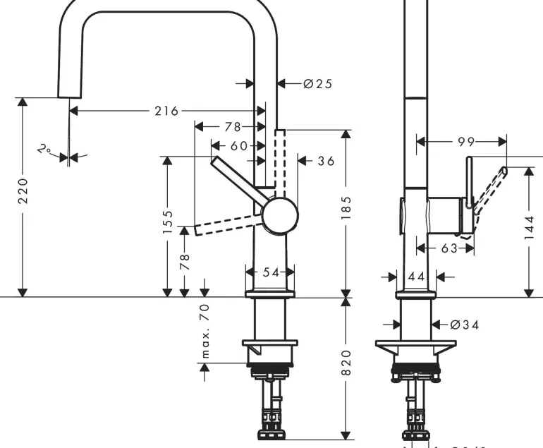Yksivipuinen keittiöhana messinkiä. Keraaminen säätökasetti ja G ⅜ -letkuliitännät. Maksimivirtaama 3 bar: 9 l/min. Kääntösäde säädettävissä 4-portaisesti: 60°, 110°, 150° tai 360°.