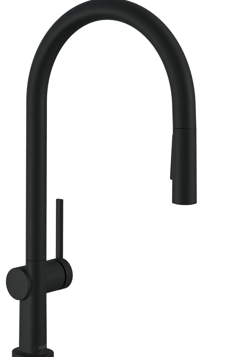 Lukittava suihkuvirtaama, joka aktivoidaan painikkeella ja joka palautuu automaattisesti, kun hana suljetaan