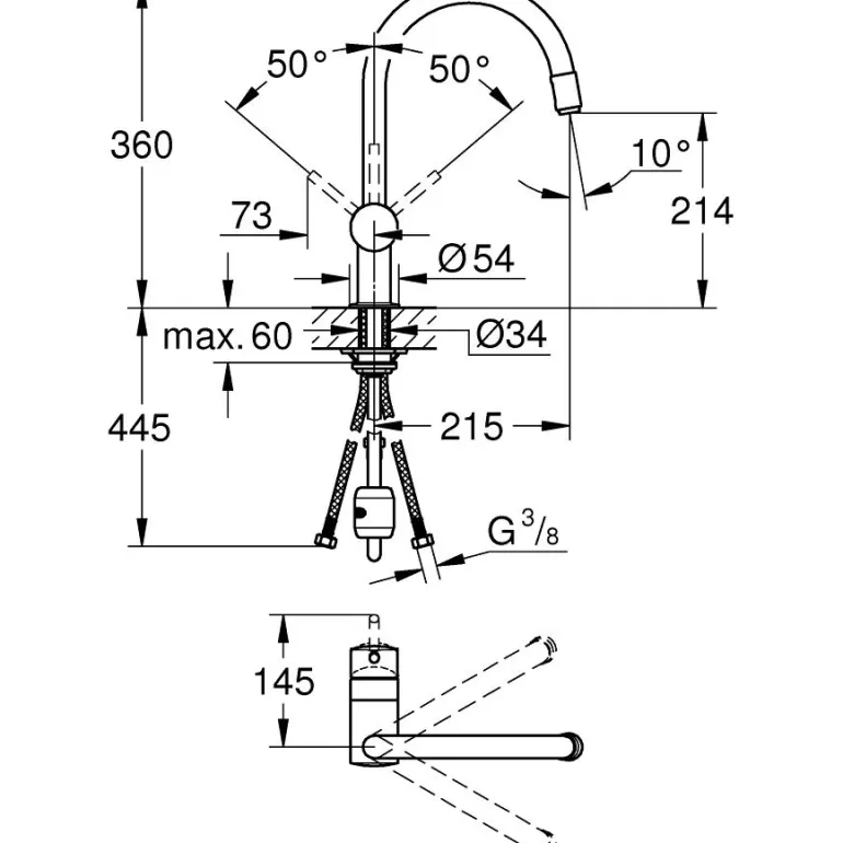 Minta-keittiöhanassa yhdistyvät tyylikäs ja moderni tyyli ja ensiluokkainen suorituskyky. Korkea U-mallinen juoksuputki, jota voidaan kääntää 360°, tekee puhdistamisesta tai suurten kattiloiden täyttämisestä helpompaa kuin koskaan. Hanan ulosvedettävä suihkusuutin kasvattaa hanan käyttösädettä ja helpottaa puhdistamista. Integroidun GROHE SilkMove -teknologian ansiosta vipu liikkuu erittäin vaivattomasti ja voit helposti ja tarkasti säätää veden lämpötilaa ja määrää. Kiiltävä ja naarmuuntumista kestävä GROHE StarLight -kromipinnoite luo hehkun, joka kestää useita vuosia. Yksinkertaisen asennusjärjestelmän ansiosta voit asentaa sen hetkessä.
