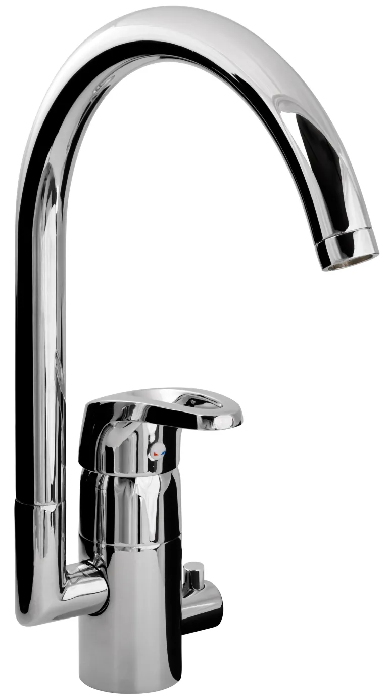 Tiskiallassekoitin, jossa keraaminen sisäosa. Toimitus sisältää liitäntäletkun, joka on pehmeää metallipäällysteistä PEX:ää ja jossa on 10 mm:n metallipää tavallista kupariputkiliitäntää. Rajoitettu nokka 120°.