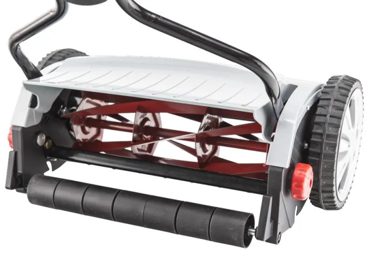 Korkealaatuinen kosketukseton kelaruohonleikkuri, kevyt ja kestävä alusta, leikkuuleveys 38 cm ja säädettävä leikkuukorkeus 1,4-3,5 cm.