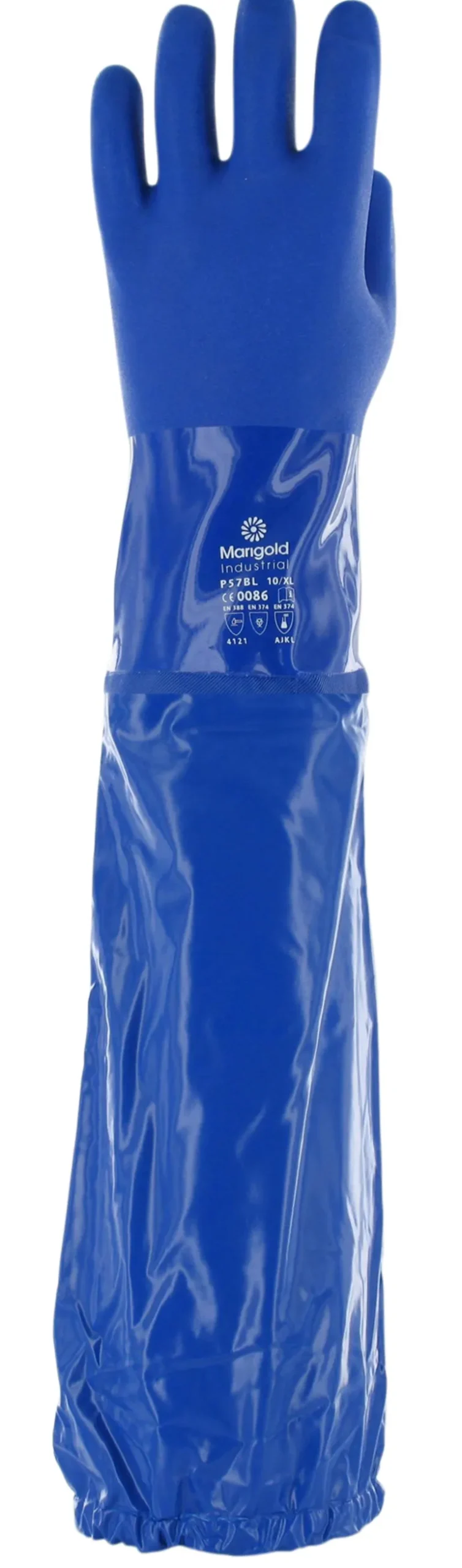 Nukattu käsine erityisen pitkällä kauluksella, joka suojaa koko käsivartta. Pehmeä PVC-pinnoite pysyy kestävänä ja joustavana myös alhaisissa lämpötiloissa.