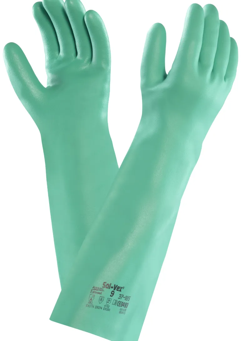 Sol-Vex-nitriilikäsine ilman puuvillanukkausta on ihanteellinen valinta moniin eri työympäristöihin, joissa aiotaan turvallisesti käsitellä haitallisia kemikaaleja. Sandpatch-pinta antaa käsineelle tasaisen pinnan ja on myös kestävyyden takia kustannustehokas.