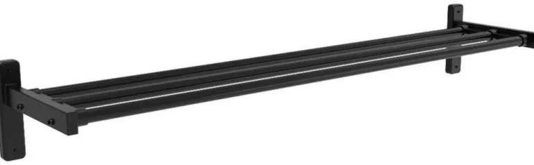 Enwex EX366*10SS on musta seinään kiinnitettävä kenkäteline, jonka päädyt jauhemaalattua terästä ja tangot muovipinnoitettua teräsputkea.