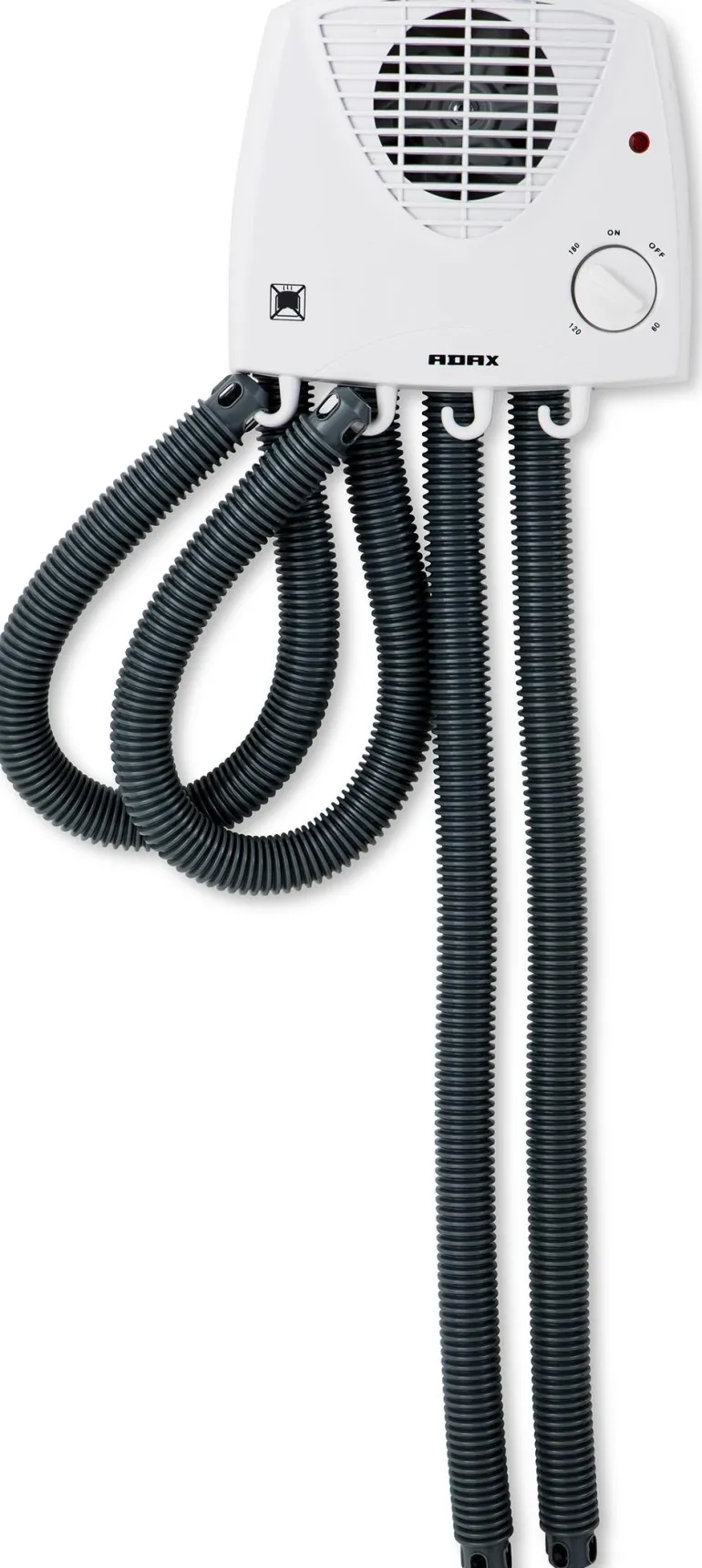 Adax ST12T on klassinen 290 W:n kenkäkuivain, jonka ilman lämpötila on 42-45°C, varustettu mekaanisella ajastimella ja ylikuumenemissuojalla. Hellävaraisen kuivauksen ansiosta ST12T sopii sekä nahkakenkien ja -saappaiden että -käsineiden kuivaamiseen. Kiinnitetään seinään.