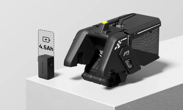 Akulla varustettu keruusäiliö Mammotion Yuka-sarjan robottiruohonleikkureille. Kerää ja tyhjentää automaattisesti hienojakoiset lehdet, roskat, leikatun ruohon, rikkaruohot, tammenterhot ja oksat. Asennus vie vain minuutin yksinkertaisella plug-and-play-toiminnolla.