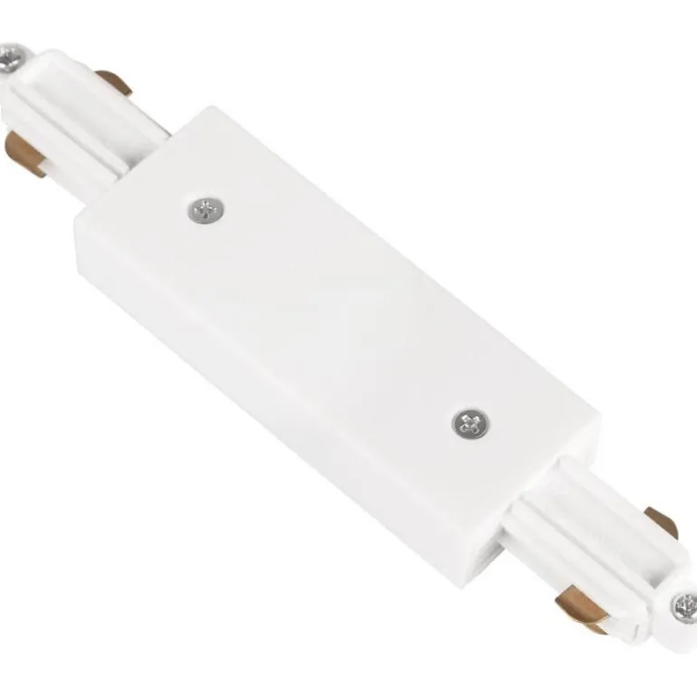 Valkoinen yksivaiheinen keskiliitin. Liitäntä on osa monipuolista kiskojärjestelmää Focus- ja Comfort-sarjan yksivaiheisille piilotetuille tuotteille, joissa jokainen osa myydään erikseen tarpeisiisi sopivaksi.