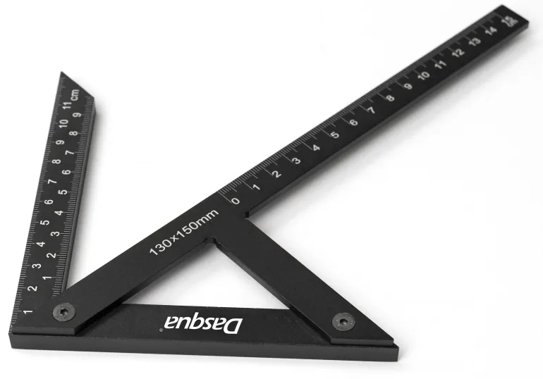 Dasqua 513899 on naarmunkestävä 150 x 130 mm:in keskiöintikulmain valmistettu karkaistusta alumiinista. Kulmaimessa laserkaiverrettu millimetriasteikko. Kulmalla on 0,3 mm:in toleranssi ja mittaa nopeasti pyöreän kappaleen keskipisteen.