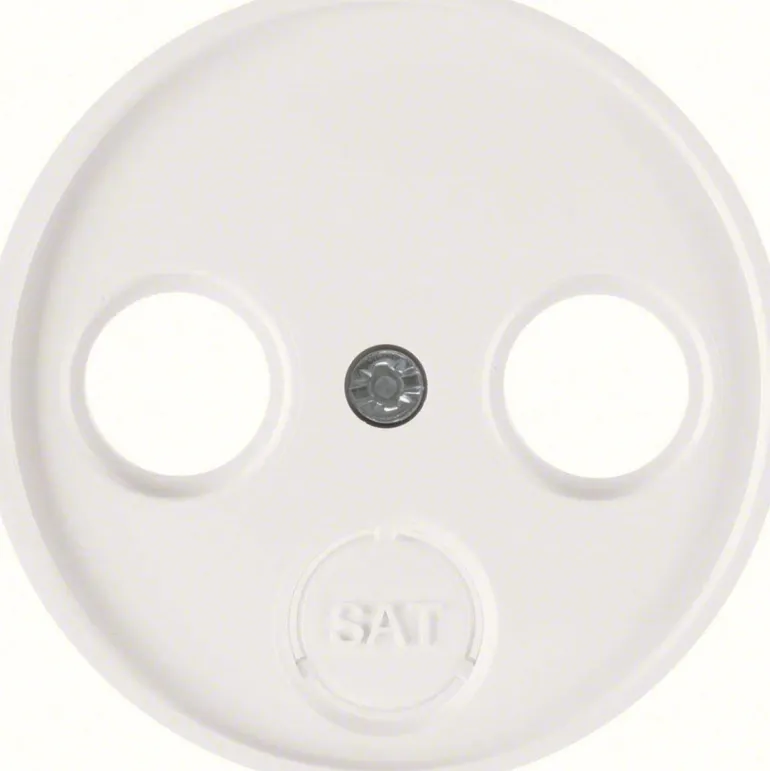 Pyöreä C-aluslevy SAT/TV:llä tai vain SAT-pistorasian aukolla, tuotteessa tekstimerkintä. Saatavana mustana tai valkoisena.