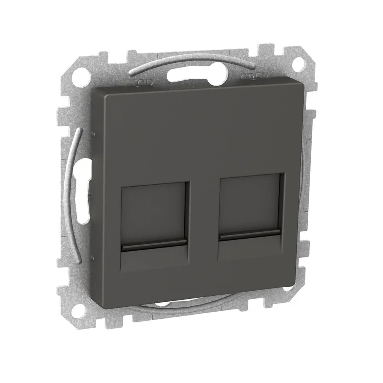 Suora keskiölevy pölyltä suojaavilla kansilla kahdelle Keystone-liittimelle. Punainen sisäosa, reikäkuvio. Leveys 15,4 mm x korkeus 19,3 mm. C/c 60 mm uppokojerasia-asennuksiin tai 35 mm pintakojerasiaan. Täydennetään RJ45-liittimellä ja valinnaisella Exxact-kehyksellä.