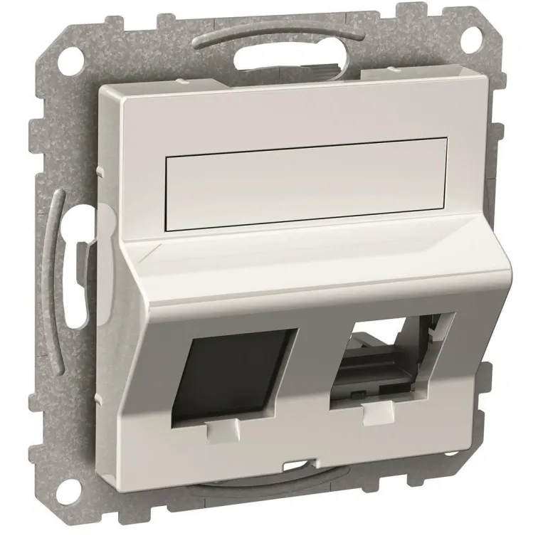 Exxact-sarjan kulmamallin valkoinen keskiölevy 2x Actassi S-One DPM- ja/tai Keystone-liittimeen. Mahdollista yhdistää mm. S-One DPM- ja Keystone-sovittimet, tyyppi USB. Asennus liitäntärasiaan cc 60 mm tai pinta-asennettuna rasiaan vähintään 33 mm Cat 6 UTP: lle ja mieluiten 47 mm STP: lle. Säädettävä kaksisivuinen tyyppikilpi; tyhjä, teksti ja värikoodaus. Täydennetään RJ45-liittimellä ja Exxact-kehyksellä.
